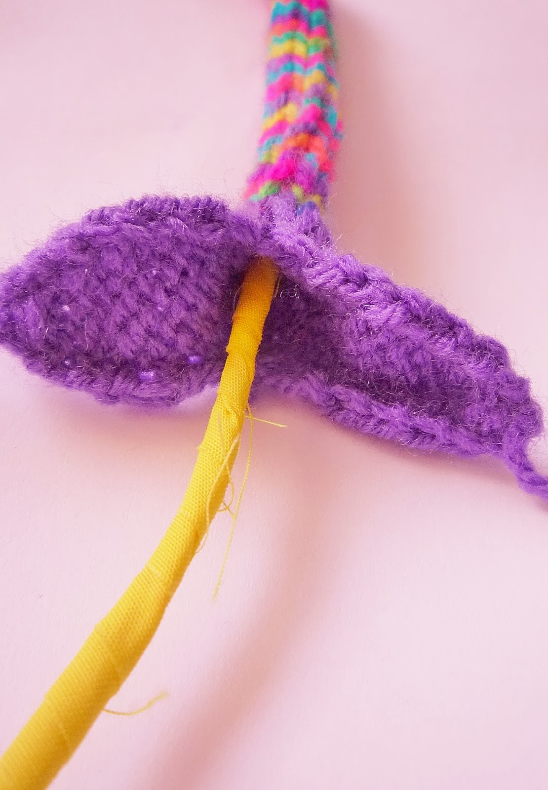 all yarn tails. inside the snake, except the two tails at the tips of the mouth.